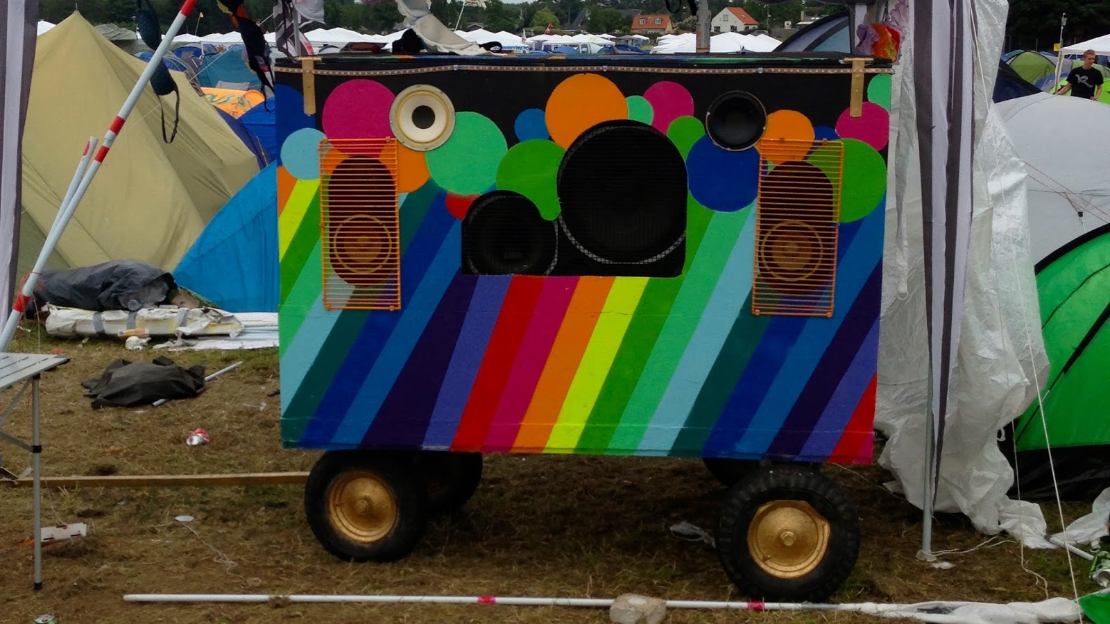 Mange af lejrene sørger for god stemning og musik med hjemmebyggede anlæg . Nogle anlæg bærer præg af at være bygget efter de forhåndenværende søms princip, . Måske kunne de bygge flere anlæg og . Altså et transportabel batteri drevet anlæg. Her er David Hyatt med toppen af sit hjemmebyggede anlæg, der udover at . Jeg har et festivals anlæg som kunne være fedt at kunne få til at køre via en stikkontakt frem for at jeg skal oplade bil batterier konstant! Men enkelte gør lidt mere ud af deres end andre.